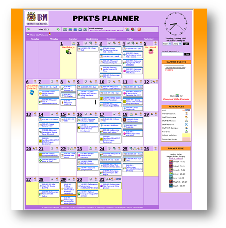 Planner Online merupakan satu sistem pengurusan masa untuk memudahkan pihak pengurusan dan staf di sesebuah organisasi menguruskan mesyuarat dan aktiviti-aktiviti mereka. Produk ini dapat membantu organisasi membuat perancangan masing-masing dengan mengetahui maklumat berkaitan tarikh dan masa aktiviti ingin dilaksanakan serta maklumat lokasi dan penglibatan staf. |