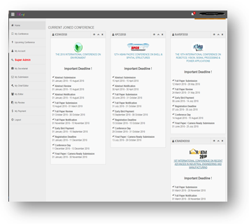 Sistem EZConf ini dibangunkan untuk membantu pihak pengurusan persidangan menguruskan aktiviti persidangan dengan cekap. EZConf adalah satu platform sistem pengurusan persidangan yang komprehensif. |