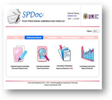 Sistem Pengurusan Dokumen (SPDoc) dibangunkan untuk memudahkan pemantauan pergerakan fail dan dokumen dengan lebih bersistematik. Sistem ini juga akan menghantar email makluman kepada staf sekiranya sesuatu dokumen tersebut perlu kepada tindakan. Selain itu, pengurusan pinjaman fail juga disediakan untuk memudahkan pemantauan aktiviti pinjaman fail. |