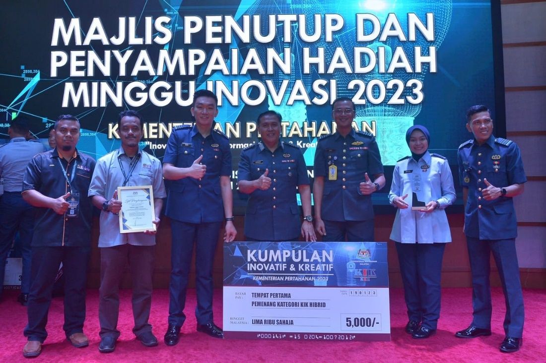 MINDEF, KUALA LUMPUR 19 JANUARI 2023 (KHAMIS) - Pasukan Jejak Samudera telah menjuarai Pertandingan Kumpulan Inovatif dan Kreatif (KIK) Horizon Baharu kategori KIK Hibrid Peringkat Kementerian Pertahanan Tahun 2023. Pasukan tersebut terdiri daripada No 16. Skuadron, TUDM, Subang, En Mohamad Zihad Mahmud, Pegawai Latihan Vokasional, Pusat Pengajian Kejuruteraan Aeroangkasa, USM dan En Mohd Jamil Kasim, Penolong Pegawai Teknologi Maklumat, Pusat Pengetahuan, Komunikasi dan Teknologi (PPKT), Kampus Kejuruteraan USM. Hadiah tempat pertama merupakan wang tunai RM 5000.00, piala dan sijil.